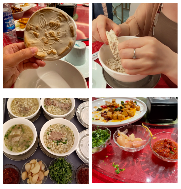 同盛祥飯莊以經營獨具民族特色的牛羊肉泡饃而馳名中外。百年老字號【同盛泡饃】被譽為“同盛祥天下第一碗”,其牛羊肉泡饃制作技藝被列入國家級非物質文化遺產保護名錄?!巴ⅰ倍忠苍⒁馔耐拢睒s昌盛。一壺茶一桌友,共坐閑話掰泡饃,這也是西安“慢”的儀式。